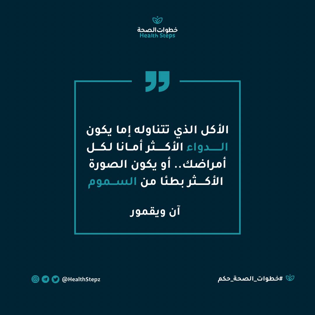 الغذاء له تأثير على صحتنا على المدى البعيد إما بالإيجاب أو السلب، فاحرص على اختيار غذائك بعناية.البوست على الانستقرام #خطوات_الصحة_حكم#خطوات_الصحة_تغذية